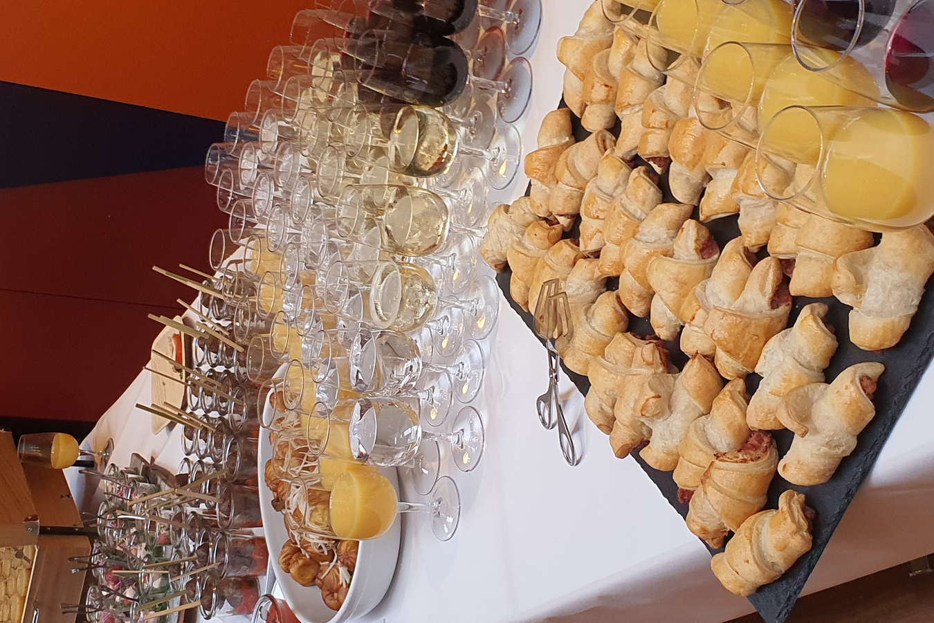Im Anschluss durften alle klassenweise über den roten Teppich auf die Bühne schreiten und ihr Diplom und eine Rose abholen. Während der Feier begleiteten uns erneut Costi Topalidis mit seinen Musikern mit toller Musik. Nachdem alle ihre Diplome in den Händen hielten gab es dann endlich auch etwas zu Trinken und zu Essen. Endlich konnte auf den Abschluss angestossen werden.