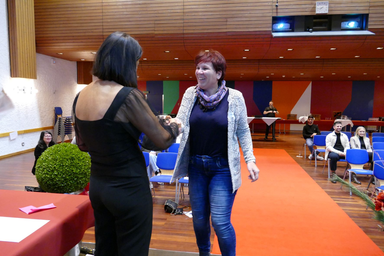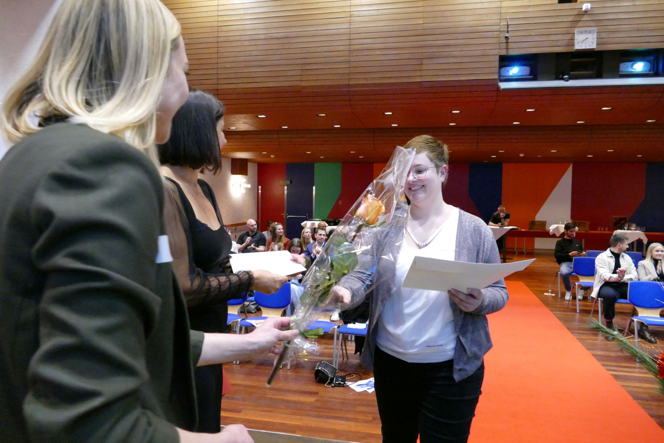 Der rote Teppich Moment ist immer wieder ein Highlight für die Absolventinnen und Absolvent. Auch dieses Mal durften sie über den roten Teppich zur Bühne gehen und ihr Zertifikat und eine Rose entgegennehmen.