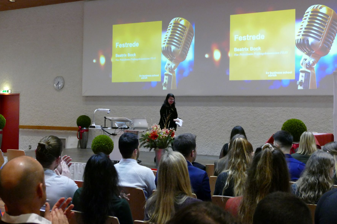 Mit diesen Worten verabschiedete sich Petra Fisler und übergab an Bea Bock, Vizepräsidentin Prüfungskommission.